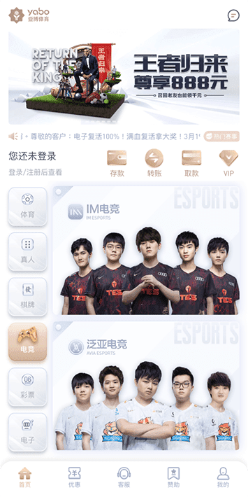主打产品电子竞技相关部门完成了IM电竞的接入,此次接入将是一次战略合作的协作,至此完成了电竞领域的比赛全覆盖,将能为大家提供最全的赛事竞猜贴心服务。(2020年11月)